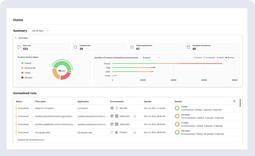 - Comprehensive reporting with visualizations for easy troubleshooting.